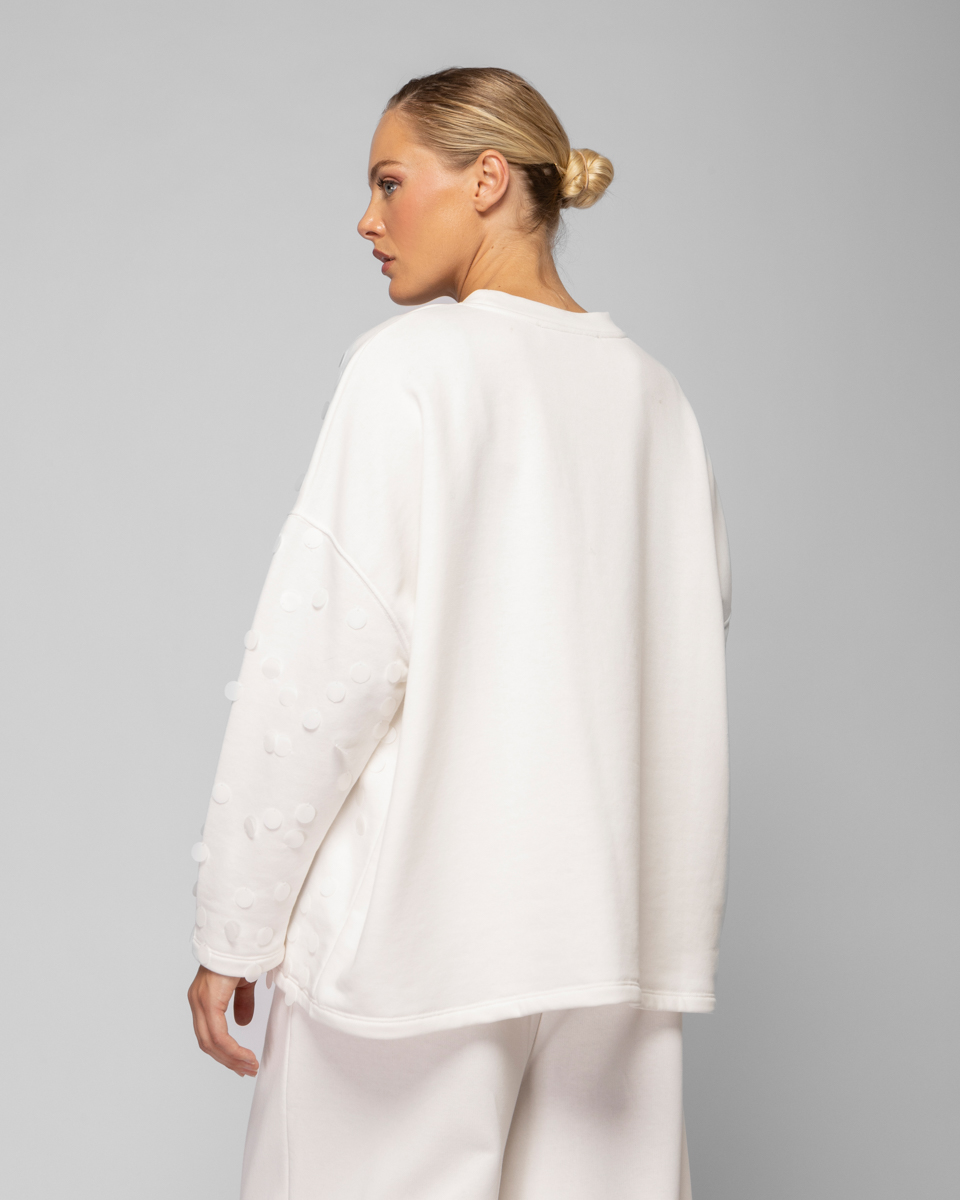 Φούτερ μπλούζα με στρόγγυλη λαιμουδιά με μακρύ μανίκι με μεγάλες πούλιες κεντημένες στο μπροστινό μέρος και στα μανίκια.